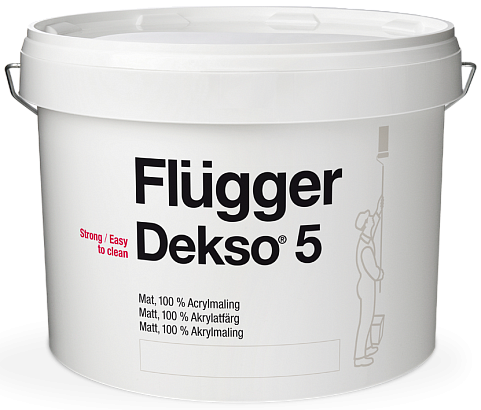 Flugger Dekso 5 Ultramat — это 100% акриловая краска, которая обеспечивает великолепное матовое покрытие с выдающимися моющими свойствами. Она отличается высокой способностью к перекрытию и обладает экстра прочной поверхностью, способной противостоять истиранию и загрязнениям. Эта краска легко справляется с удалением даже самых сложных пятен, не оставляя следов. Dekso 5 имеет европейский экологический сертификат ECO, подтверждающий её безопасность.